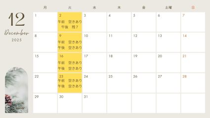 - 当日キャンセル:不可(体調不良・医学的理由を除く)