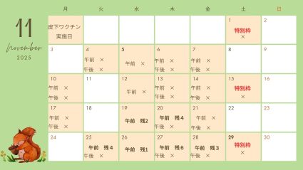 土曜日は診察時間外にインフルエンザ予防接種のための特別枠を設けます。